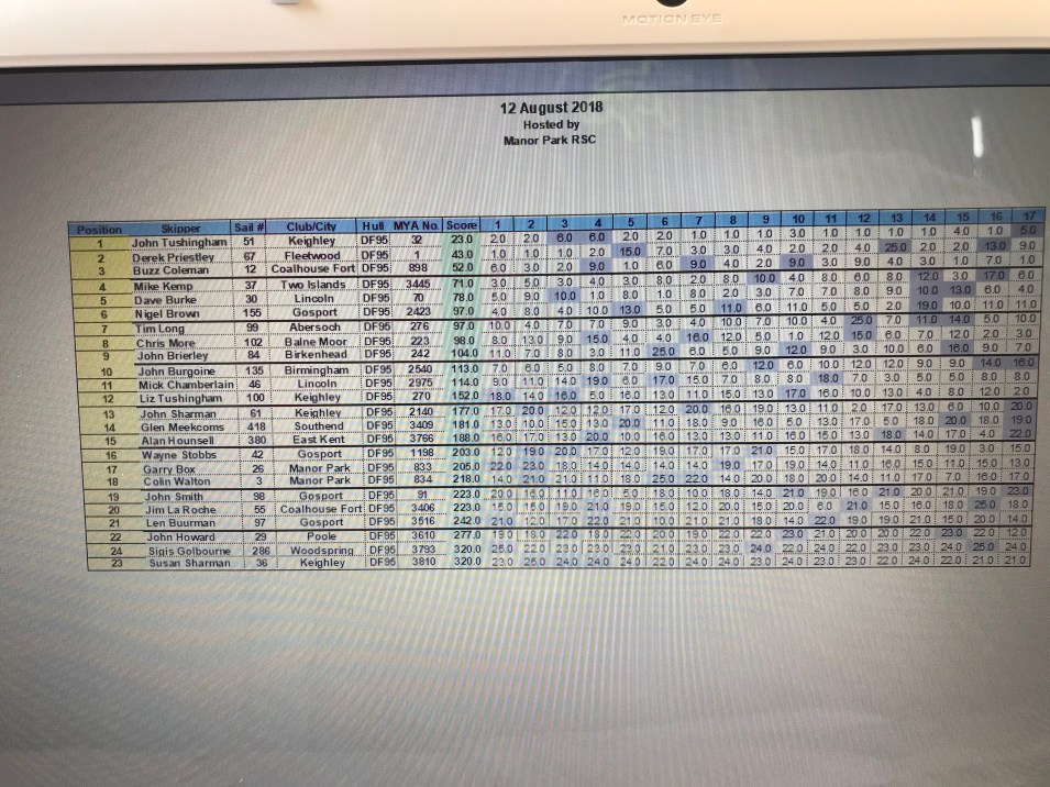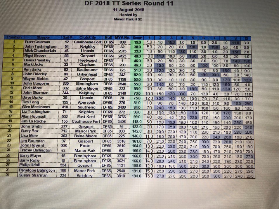Buzz Coleman was the winner putting on a Tushyesque performance and taking 19 points from the ten races. Tushy was second with double the points, and Mick Chamberlain was just one point back in third spot.